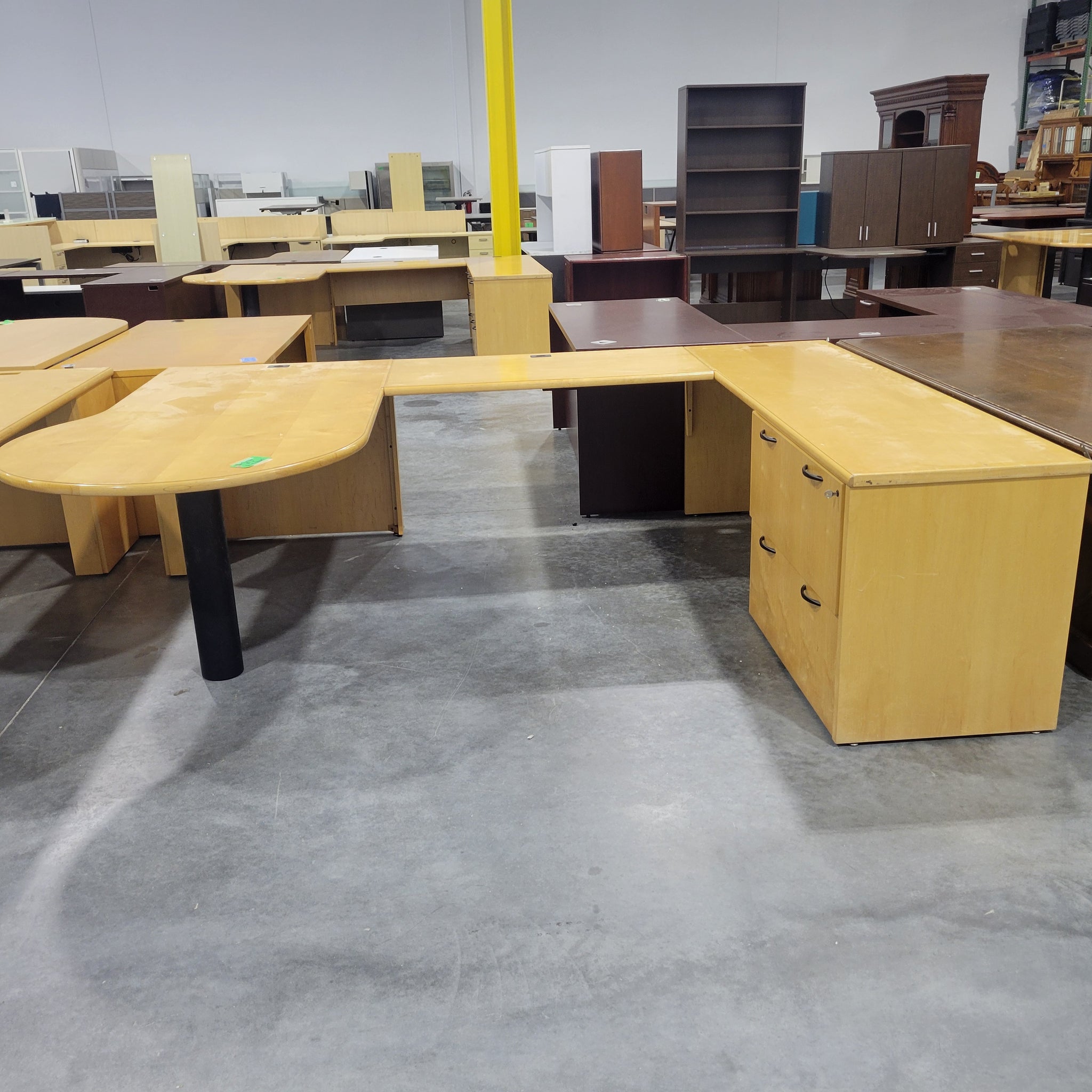 Large Maple P-Top Desk. Double pedestal with lateral file drawers. Deeply discounted!